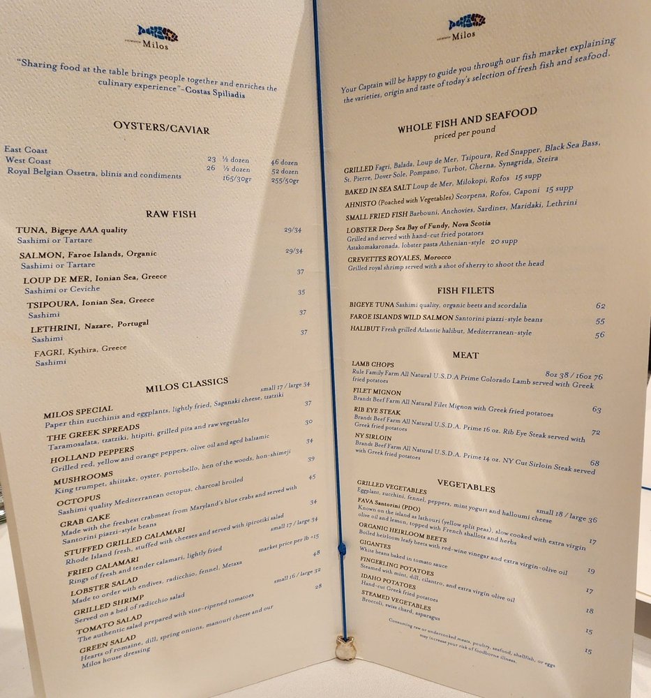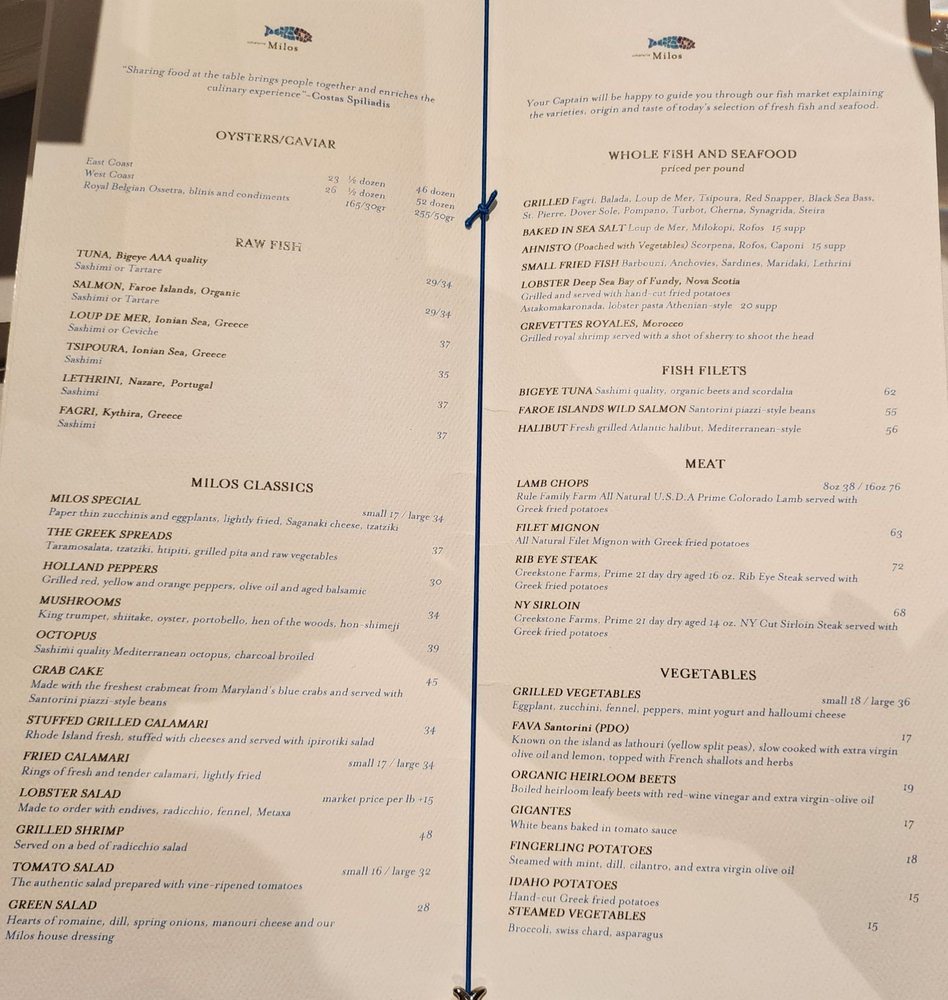 Estiatorio Milos - Midtown New York Menu (Update 2025)